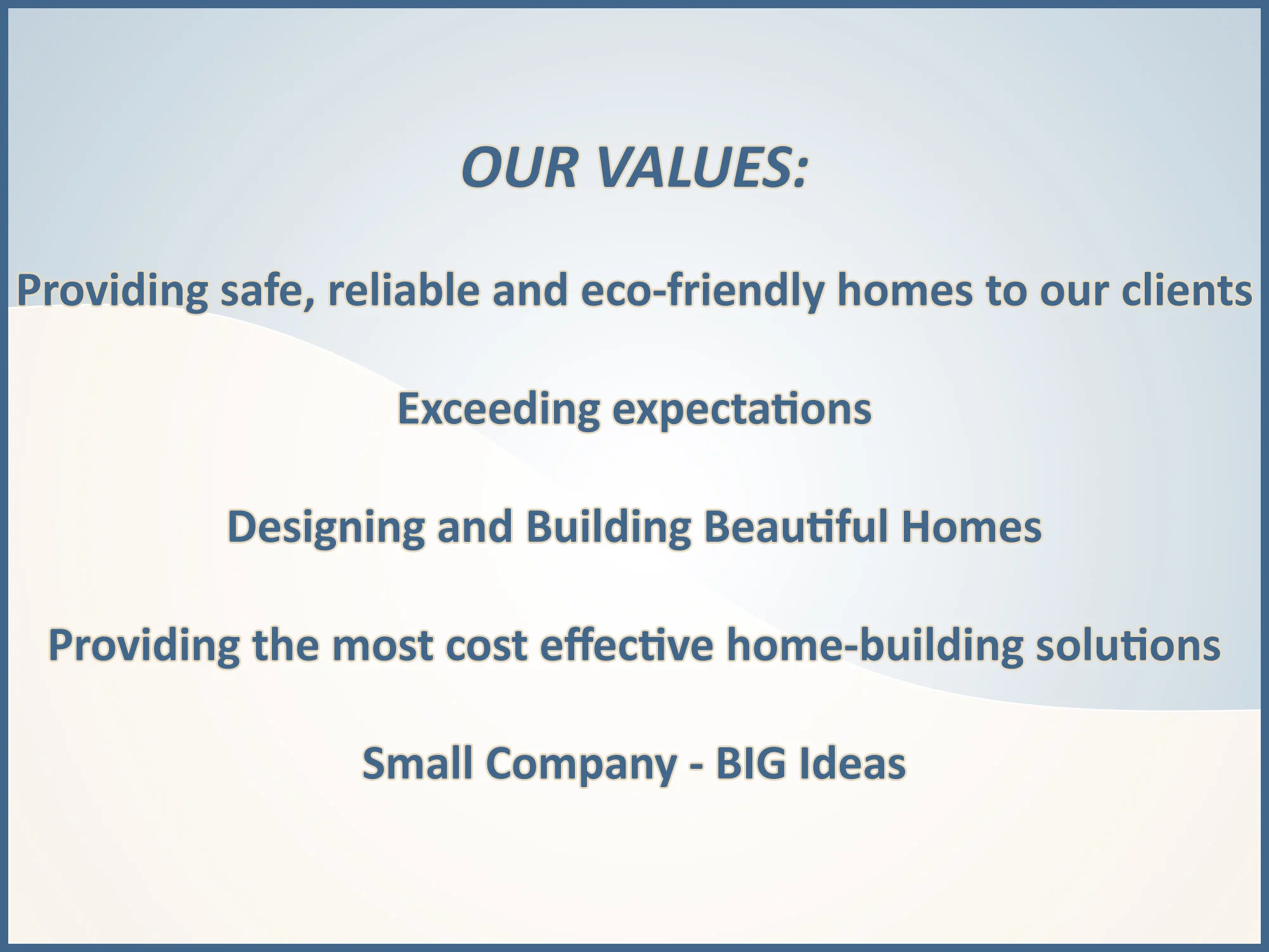 Our goal is to make the design and building of your home as easy and enjoyable as possible, starting with the beginning stages of design through to handing you the keys to your front door. To do that, we offer all the necessary services to turn your dream into a reality. From schematic design sketches to completed project, it is our commitment to the customer and our attitude that no detail too small that makes us standout from the competition.